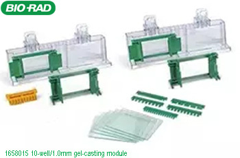 1.0mm 5孔凝膠灌膠模塊 | Bio-Rad | 1658013 | 1個 | Mini-P Tetra Cell 5-well/1.0 mm gel casting module includes: 2 casting stands(1653303) 4 casting frames(1653304) 5 combs 5 short plates and 5 spacer plates (without sample loading guide) | 詢價 |