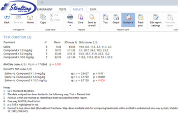 除了簡(jiǎn)單地顯示動(dòng)物組的均值和偏差之外,ANY-maze動(dòng)物行為視頻跟蹤系統(tǒng)可使用 30 多種內(nèi)置的參數(shù)和非參數(shù)測(cè)試對(duì)結(jié)果進(jìn)行完整的統(tǒng)計(jì)分析