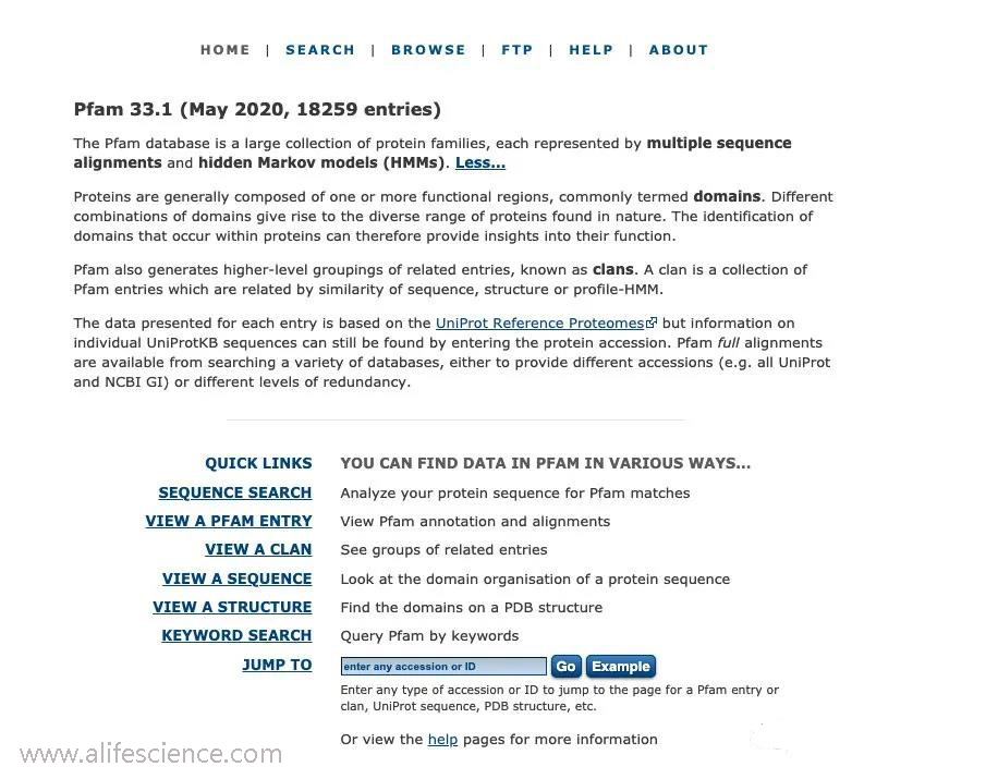 蛋白家族檢索數(shù)據(jù)庫(kù):Pfam 33.1(2020年5月,18259個(gè)條目) [http://pfam.xfam.org/]。