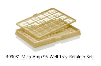 分為MicroAmp 96-Well Tray(N8010541),MicroAmp 96-Well Tray/Retainer Set(403081)和MicroAmp 96-Well Reaction Tube/Tray/Retainer Set(403083) 三款,適用于不同PCR管類型。其共同點(diǎn)是具有與2700、9700、2720 PCR儀的96×0.2mL樣品模塊適應(yīng)的托盤基礎(chǔ),直接將載有反應(yīng)管的96孔托盤放置在熱循環(huán)模塊上,有助于保持全部單個PCR管或8聯(lián)排管與樣品模塊的均勻密切接觸和受熱均勻。同時作為PCR支架,分?jǐn)偀嵘w壓力,防止模塊上局部反應(yīng)管受壓不均而變形損壞,影響實(shí)驗結(jié)果。
